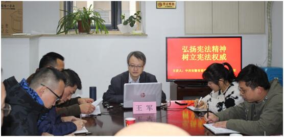 開展一次憲法宣傳講座。12月5日上午在蕪湖路街道蘭亭社區(qū)會議室,請法學教研部教授王軍為社區(qū)工作人員和居民做一次以《弘揚憲法精神樹立憲法權(quán)威》專題講座,積極宣傳人人學法、守法、用法的新風尚。