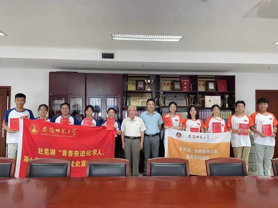 2021年,偉大的中國共產黨迎來了百年華誕。在慶祝中國共產黨百年華誕的重大時刻和“兩個一百年”奮斗目標歷史交匯的關鍵節點,7月22日上午,安徽師范大學化學與材料科學學院晚晴志愿服務隊和黨史宣講團的同學們來到省委黨校(安徽行政學院),校(院)退休研究員劉以順和同學們進行了親切友好的交流。