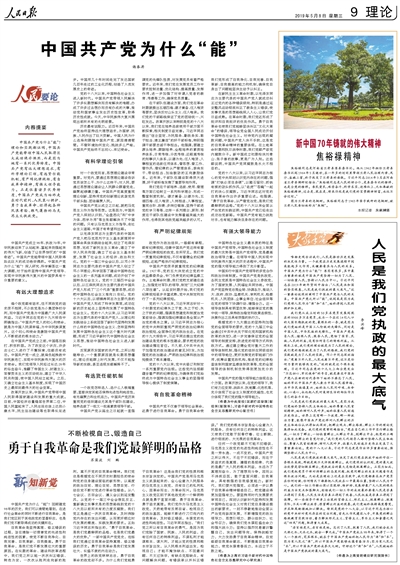 中國共產黨成立98年、執政70年,中華民族迎來了從站起來、富起來到強起來的偉大飛躍,創造了讓世界驚嘆的“中國奇跡”。中國共產黨能帶領中國人民取得如此巨大的成功絕非偶然。中國共產黨為什么“能”?深入研究、科學解答這一重大課題,對于始終堅持中國共產黨領導、實現中華民族偉大復興的中國夢具有十分重要的意義。