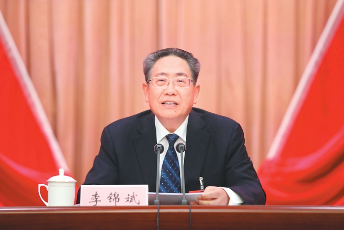 李錦斌強調,要牢牢把握新發展格局,落細落實打造國內大循環重要節點、國內國際雙循環戰略鏈接的重點任務。要突出現代流通體系建設這個戰略牽引,聚焦“兩新一重”擴投資、暢通產業循環,聚焦“線上線下”促消費、暢通市場循環,聚焦“人流物流”建體系、暢通經濟社會循環,在服務全國構建新發展格局中展現安徽擔當。要突出“個十百千”工程這個戰略牽引,深入開展產業鏈補鏈固鏈強鏈行動,以“銅墻鐵壁”為重點推動傳統產業優化升級,以“芯屏器合”為標識推動新興產業蓬勃興起,以“融會觀通”為主體推動現代服務業提質增效,以“大智移云”為引導推動數字產業搶灘布局,打造具有重要影響力的新興產業聚集地。要突出鄉村建設行動這個戰略牽引,全面推進、分類實施鄉村振興戰略,扛起保障糧食安全重任、提高農業競爭力,全面推開以“三大革命”“三大行動”為重點的農村人居環境整治、增強農村吸引力,推動實現鞏固拓展脫貧攻堅成果同鄉村振興有效銜接、提升減貧接續力,打造鄉村全面振興的安徽樣板。要突出高標準市場體系建設這個戰略牽引,堅持兩個“毫不動搖”、深入實施民營經濟上臺階行動計劃、激活市場主體提效益,全面實施市場準入負面清單制度、優化資源配置提效率,推進“放管服”“全省一單”改革、打造升級版“皖事通辦”平臺,爭當擊楫中流的改革先鋒。要突出五個“區塊鏈接”這個戰略牽引,推進“一地六縣”長三角生態優先綠色發展產業集中合作區、“3+N”省際毗鄰地區新型功能區和各類省際產業合作園區建設,推動各市的城區與滬蘇浙有關市的城區對口合作、我省各省轄市與滬蘇浙相關城市結對共建,扎實推進長三角更高質量一體化發展。要突出文化產業優化升級工程這個戰略牽引,深入開展習近平新時代中國特色社會主義思想學習教育、引領社會文明風尚,一體建設城鄉公共文化服務體系、豐富文化服務供給,推進“五個一批”精品打造工程、傳承紅色基因、弘揚紅色文化、壯大文化產業體系,加快建設彰顯徽風皖韻和時代特征的創新型文化強省。要突出省委“1+9+N”方案體系這個戰略牽引,堅持總體國家安全觀、確保政治安全,堅決守住不發生系統性風險底線、確保經濟安全,堅持人民至上生命至上、確保人民安全,堅持專群結合群防群治、確保社會安全,建設更高水平的平安安徽。