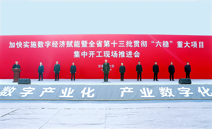 12月12日上午,加快實(shí)施數(shù)字經(jīng)濟(jì)賦能暨全省第十三批貫徹“六穩(wěn)”重大項(xiàng)目集中開(kāi)工現(xiàn)場(chǎng)推進(jìn)會(huì)在六安市舉行。記者 徐國(guó)康 攝