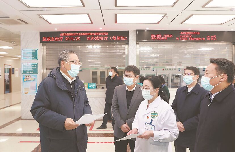 2月9日上午,省委書記李錦斌深入合肥市包河區淝河鎮社區衛生服務中心,看望慰問奮戰在疫情防控工作第一線的社區醫務工作者。 本報記者 徐國康 攝