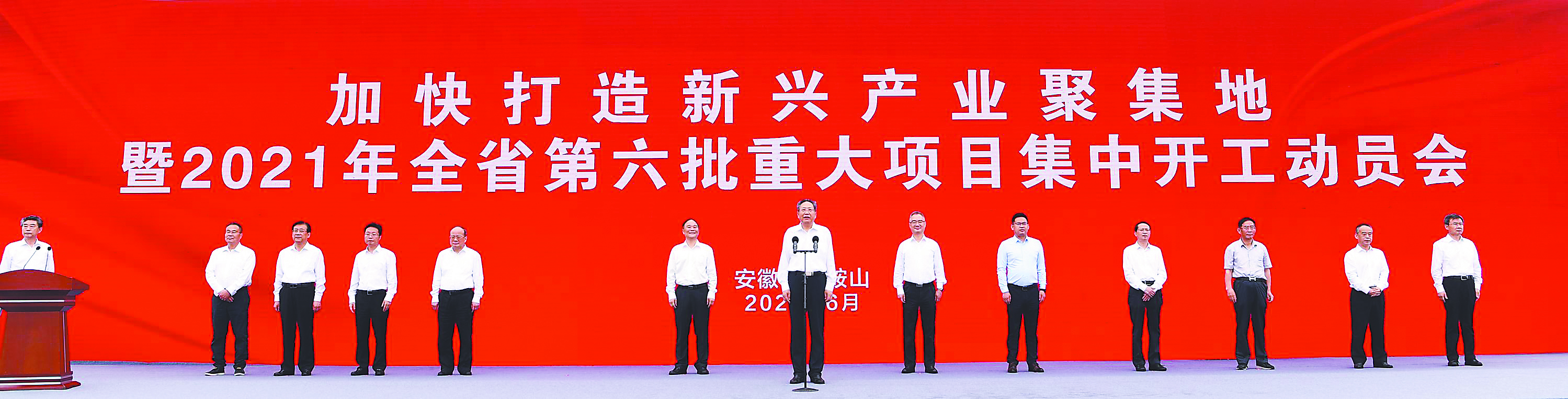 6月19日上午,加快打造新興產業聚集地暨2021年全省第六批重大項目集中開工動員會在馬鞍山市舉行。省委書記李錦斌宣布開工,省委副書記、省長王清憲講話。省委常委、常務副省長、省政協副主席鄧向陽主持,省領導郭強、沈強、李修松參加。