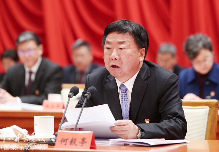 在閉幕式上,何毅亭代表校(院)委會作重要講話,指出講政治是中央黨校(國家行政學(xué)院)最鮮明的特點、最崇高的使命、最獨特的優(yōu)勢,加強校(院)黨的政治建設(shè)至關(guān)重要,對校(院)各方面工作具有根本引領(lǐng)作用,是實現(xiàn)“四個建成”發(fā)展目標的重要保障。強調(diào)要以習(xí)近平新時代中國特色社會主義思想為指導(dǎo),把“兩個維護”的工作做到位、做扎實,把堅定政治信仰的工作做到位、做扎實,把強化黨組織政治功能的工作做到位、做扎實,把嚴肅政治紀律和政治規(guī)矩的工作做到位、做扎實。要加強組織領(lǐng)導(dǎo),全面落實管黨治黨責任,抓好制度落實,建設(shè)過硬的黨務(wù)干部隊伍,確保黨的政治建設(shè)各項任務(wù)落地落實,不斷提高機關(guān)黨的建設(shè)質(zhì)量。強調(diào)校(院)組建后選舉產(chǎn)生的第一屆機關(guān)黨委、機關(guān)紀委要肩負起在新的起點上全面加強黨的政治建設(shè)、開創(chuàng)校(院)黨建工作新局面的責任和使命,恪盡職守,努力工作,帶領(lǐng)機關(guān)黨員干部進一步開拓創(chuàng)新、扎實工作,努力譜寫新時代機關(guān)黨建工作新篇章,朝著“四個建成”發(fā)展目標奮勇前進。