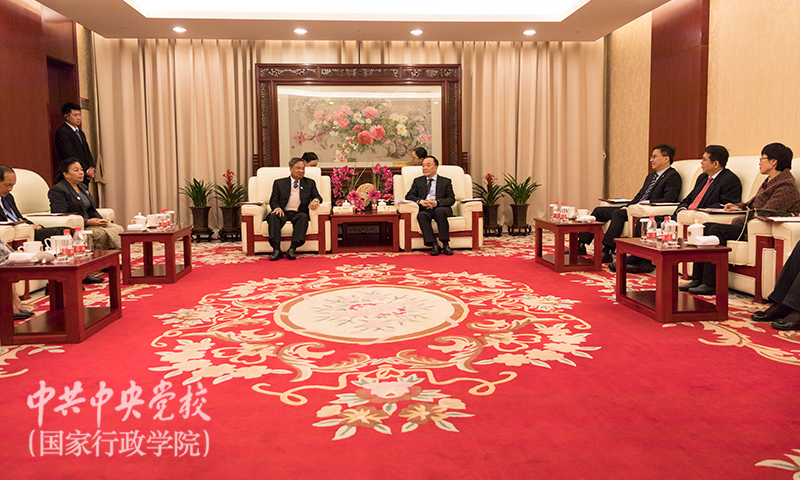 占西·普西坎感謝校(院)的熱情接待。他表示,中國和老撾睦鄰友好關系深入人心,兩國關系進入了歷史上最好的時期,感謝中國對老撾在各項建設中給予的無私幫助。他愉快的回憶起1999年自己親身參加在中央黨校舉辦的第一批老撾領導干部培訓班的情景,此次來訪,希望促進雙方在人力資源領域的進一步合作。