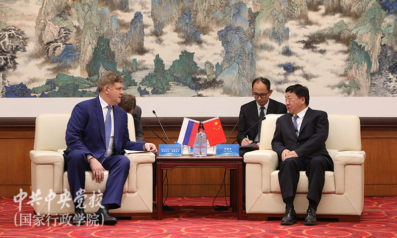 謝雷舍夫感謝中方熱情接待,高度評價中央黨校(國家行政學院)在中國干部培養體系中發揮的重要作用。他表示,當前俄羅斯致力于探索優化干部管理和培訓體制,以推動干部隊伍建設、重塑領導干部與普通民眾的緊密關系,以應對錯綜復雜的國際形勢帶來的新挑戰和新問題。普京總統和習近平主席為構建兩國友好關系樹立了榜樣。希望推動俄相關機構與中央黨校(國家行政學院)開展更加緊密的交流與合作,為推動兩國友好關系作出積極貢獻。