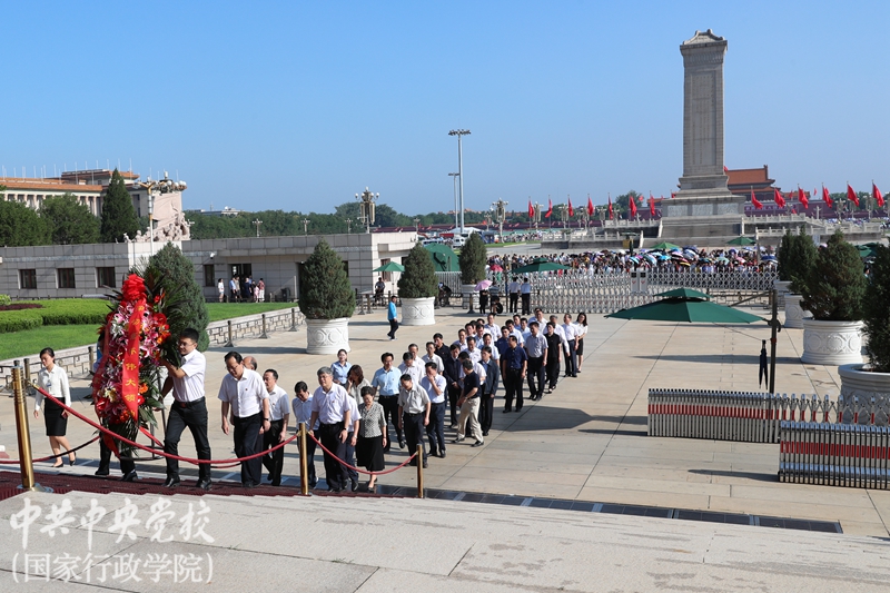 23日上午,校(院)委會成員,秘書長、副教育長、副秘書長,各直屬單位主要負責同志集體赴毛主席紀念堂,向毛主席漢白玉坐像敬獻花籃,列隊瞻仰毛主席遺容,重溫入黨誓詞,觀看文獻紀錄片《千秋偉業》。