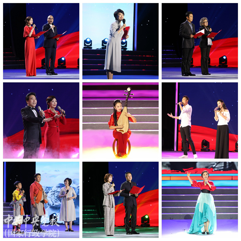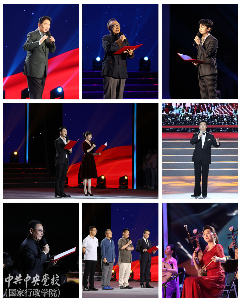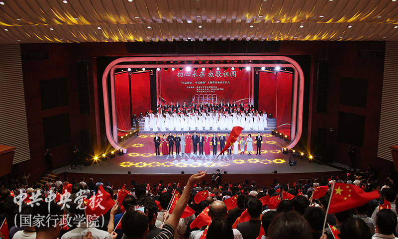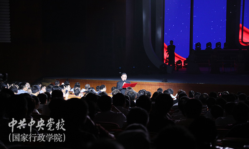 9月5日晚,“不忘初心、牢記使命”主題教育誦讀音樂會在北校區(qū)禮堂隆重舉行。本次誦讀音樂會由中央黨校(國家行政學院)、中國文學藝術界聯(lián)合會、中國電視藝術家協(xié)會共同主辦,由校(院)主題教育領導小組辦公室、圖書和文化館、中國文聯(lián)電視藝術中心承辦。中央黨校(國家行政學院)分管日常工作的副校(院)長何毅亭,中國文聯(lián)黨組書記、副主席李屹,中央和國家機關工委副書記、紀檢監(jiān)察工委書記侯凱,中國文聯(lián)黨組成員、副主席李前光,中國文聯(lián)副主席、中國電視藝術家協(xié)會主席胡占凡,中國文聯(lián)副主席、中國書法家協(xié)會副主席陳振濂,副校(院)長王東京、甄占民、李季、謝春濤,全體在職黨員、部分離退休黨員、部分學員1800余人觀看演出。