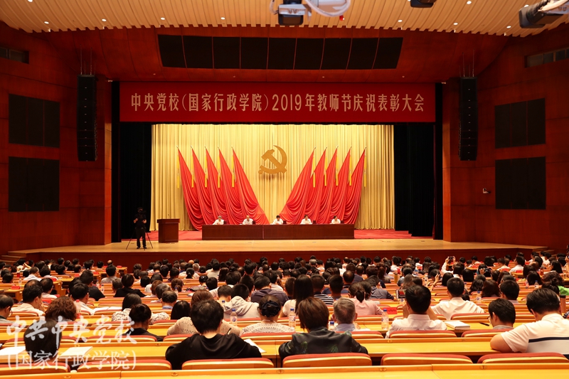 9月10日下午,中央黨校(國家行政學院)2019年教師節慶祝表彰大會在北校區禮堂召開。分管日常工作的副校(院)長何毅亭圍繞大力培養造就馬克思主義理論人才作了講話。副校(院)長王東京主持會議,副校(院)長甄占民宣讀2019年教師節表彰決定,副校(院)長李季、謝春濤出席會議。中央紀委國家監委駐中央組織部紀檢監察組副局級紀檢監察員劉崇宏出席會議。