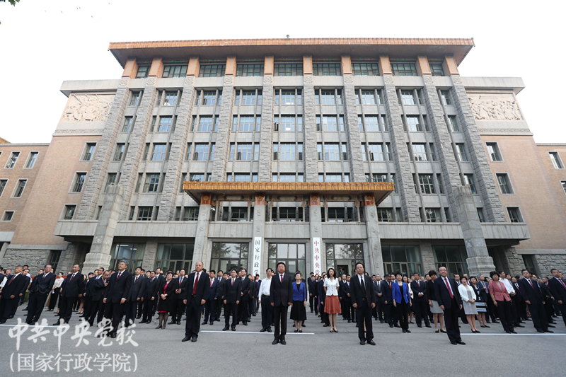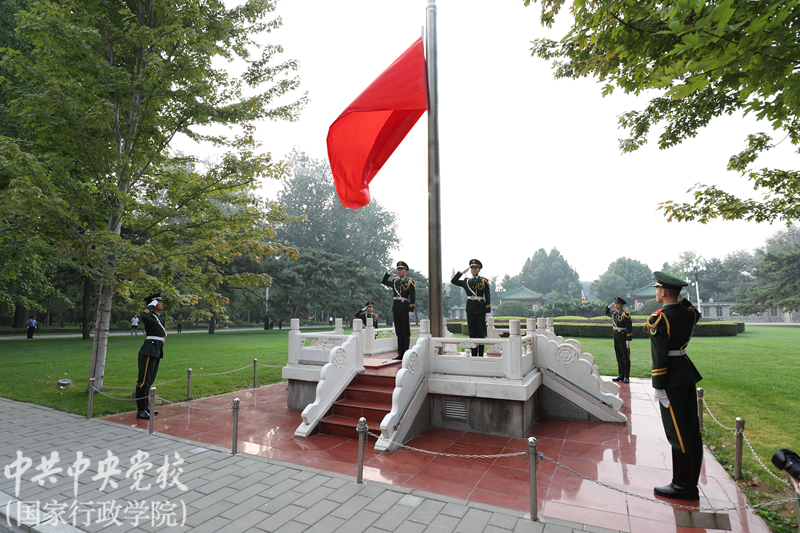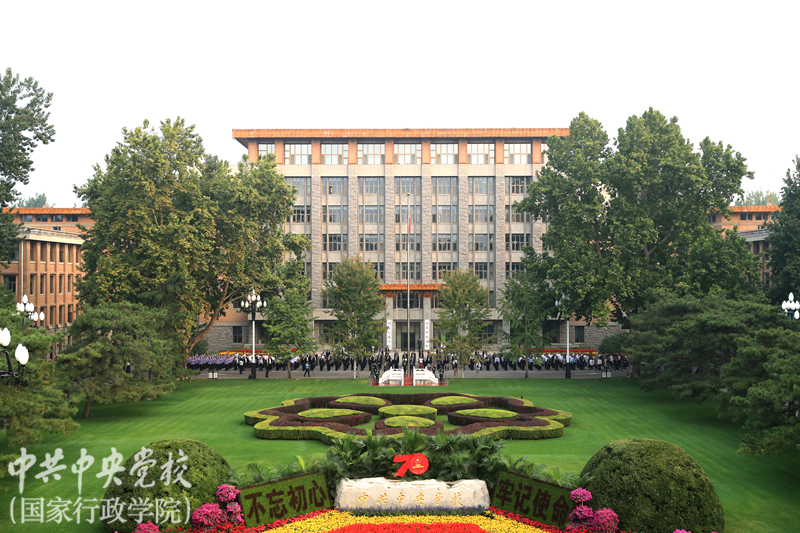 為營(yíng)造慶祝中華人民共和國(guó)成立70周年濃厚氛圍,深入推進(jìn)“我和我的祖國(guó)”群眾性主題宣傳教育活動(dòng),9月30日早晨,中央黨校(國(guó)家行政學(xué)院)舉行了莊嚴(yán)的“迎國(guó)慶”升國(guó)旗儀式,慶祝新中國(guó)70華誕。中央黨校(國(guó)家行政學(xué)院)分管日常工作的副校(院)長(zhǎng)何毅亭,副校(院)長(zhǎng)王東京、甄占民、李季、謝春濤出席升國(guó)旗儀式。副教育長(zhǎng)、副秘書長(zhǎng),各直屬單位領(lǐng)導(dǎo)班子成員,部分教職工代表和學(xué)員代表,約500人參加了儀式。