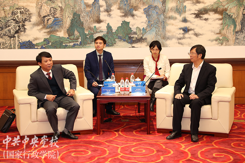 卓澤淵首先對阮玉霞一行來訪表示歡迎,并簡要介紹了新組建的中央黨校(國家行政學院)的有關情況,希望雙方在已有良好合作基礎上,圍繞中越兩黨治國理政經驗、兩國經濟社會發展經驗、兩校辦學經驗等共同感興趣的議題,進一步拓展合作領域、創新合作形式,推動合作不斷深入,取得更多積極成果。
