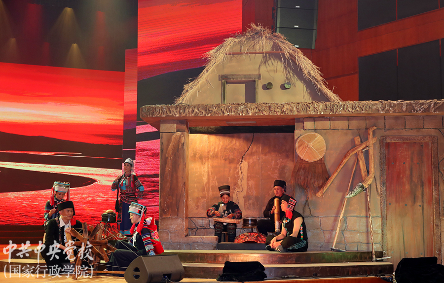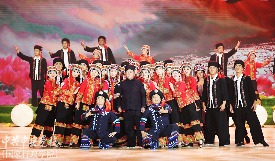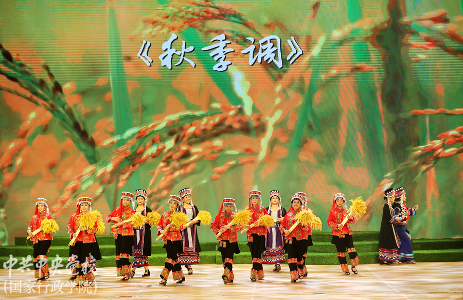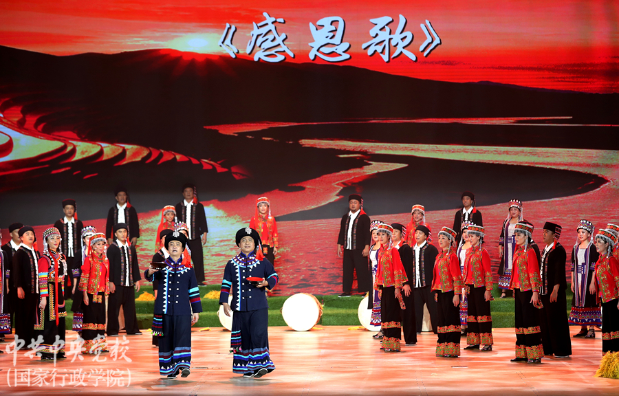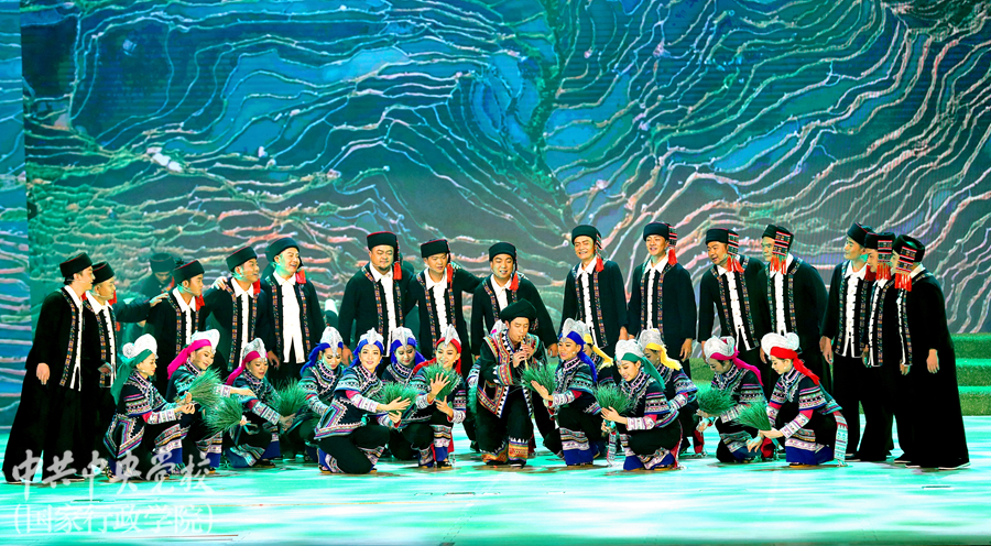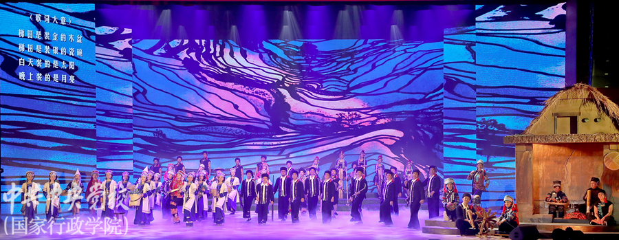 為深入學(xué)習(xí)貫徹習(xí)近平總書記關(guān)于弘揚(yáng)中華優(yōu)秀傳統(tǒng)文化的重要講話精神,傳承農(nóng)耕文明、堅(jiān)定文化自信,11月4日晚,云南省紅河哈尼族彝族自治州《哈尼古歌》在中央黨校(國(guó)家行政學(xué)院)北校區(qū)禮堂精彩上演。中央黨校(國(guó)家行政學(xué)院)分管日常工作的副校(院)長(zhǎng)何毅亭,副校(院)長(zhǎng)李季、謝春濤,云南省委常委、常務(wù)副省長(zhǎng)宗國(guó)英,云南省人大常委會(huì)副主任、省總工會(huì)主席王樹(shù)芬,云南省委宣傳部副部長(zhǎng)楊正權(quán),云南省紅河哈尼族彝族自治州州委副書記、州人民政府州長(zhǎng)羅萍等領(lǐng)導(dǎo)和嘉賓,以及校(院)各直屬單位負(fù)責(zé)同志、在校學(xué)員、教職工約1600人觀看了演出。