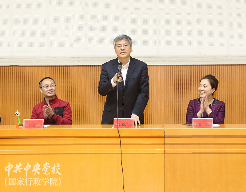 12月13日下午,中央黨校(國家行政學院)進修一部在校體育館舉辦2019年秋季學期第二批學員趣味運動會。中央黨校(國家行政學院)副校(院)長謝春濤出席并宣布運動會開幕,全程觀看比賽并為獲獎支部頒獎。廳局級干部進修班(第75期)“推動構建人類命運共同體”研究專題一支部文體委員,國家電投國核示范電站有限責任公司總經理、黨委副書記丁維民主持運動會。