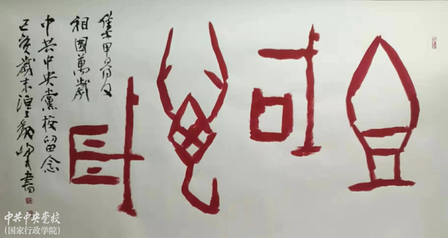 2019年是甲骨文發現120周年。習近平總書記指出,“甲骨文是迄今為止中國發現的年代最早的成熟文字系統,是漢字的源頭和中華優秀傳統文化的根脈,值得倍加珍視、更好傳承發展”。為貫徹落實習近平總書記重要指示精神,弘揚中華優秀傳統文化,2019年12月30日上午,《中華基因——紀念甲骨文發現120周年魏峰甲骨文書法藝術展》在中央黨校(國家行政學院)美育館隆重開展。開展式上,魏峰先生向校(院)捐贈甲骨文書法作品《祖國萬歲》,北京工藝美術出版社捐贈鈞瓷制品《中華基因鼎》,中央黨校(國家行政學院)副校(院)長李季為魏峰頒發收藏證書。校(院)圖書和文化館副館長劉俊瑞、中國國際文化傳播中心執行主席龍宇翔、中央文史研究館書畫院執行院長馬新林、河南安陽殷墟管理處主任王銀安先后致辭。校(院)圖書和文化館常務副館長謝煜桐宣布開展。