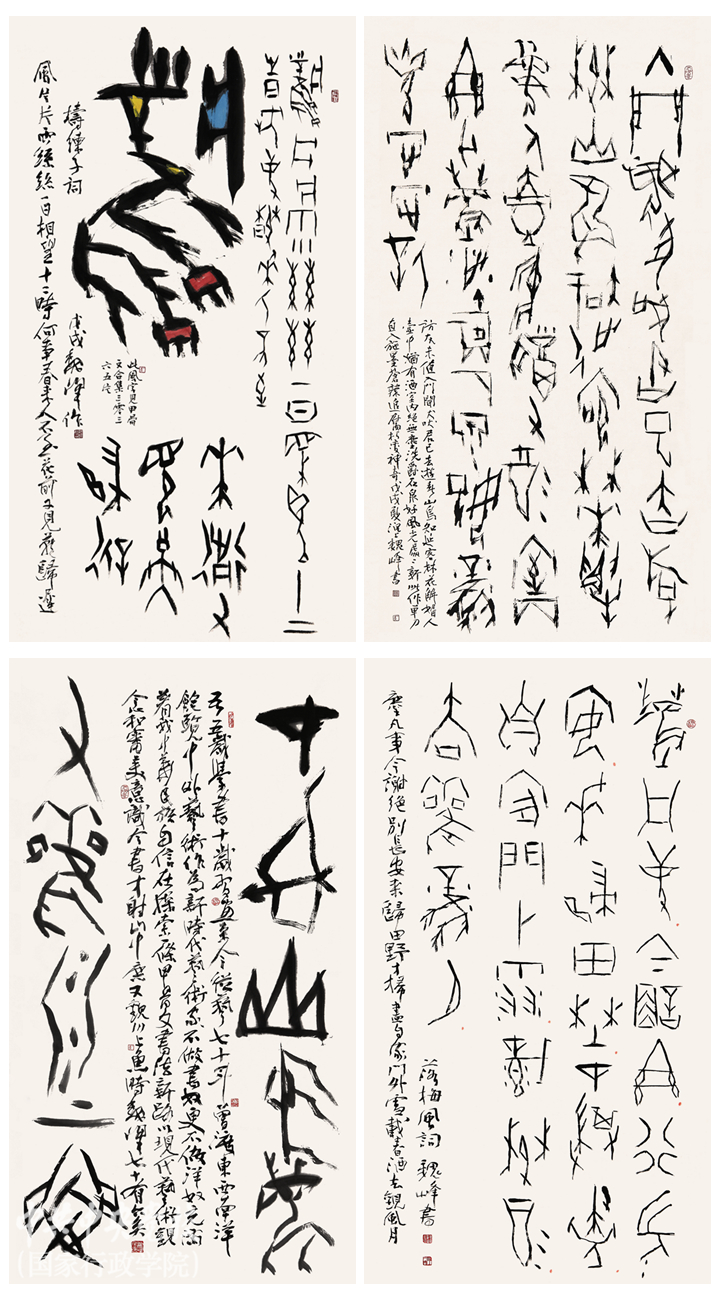魏峰,中央文史研究館書畫院研究員、國家一級美術師。作為土生土長的河南安陽人,他利用得天獨厚的地域優勢,潛心研究甲骨文對漢字形成和演進的影響,以及甲骨文字的斷代和書體變化。在此基礎上,他用現代人的美學視角書寫古老文字,將書畫結合、甲骨入印,在空靈簡古中探求真與美的統一,形成了獨特的甲骨文書法藝術風格,為甲骨文的傳承和弘揚作出了積極貢獻。
