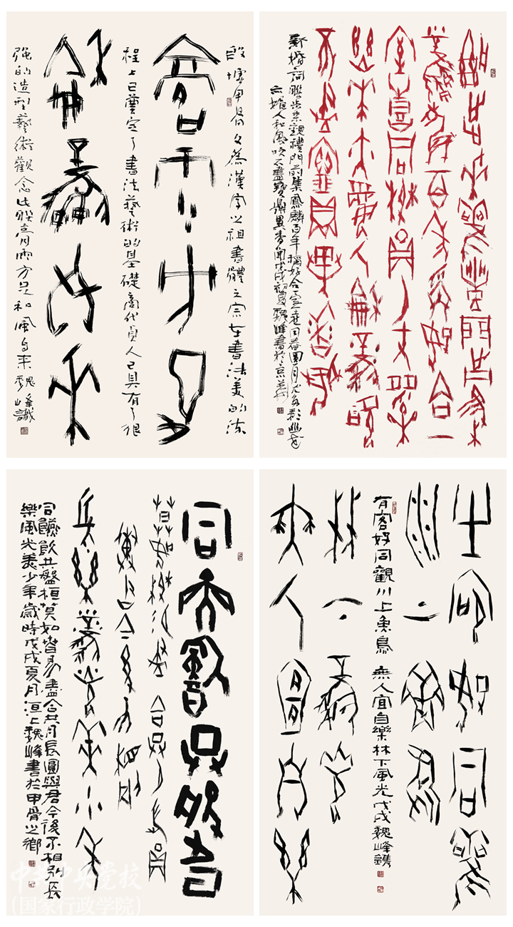 《中華基因——紀念甲骨文發現120周年魏峰甲骨文書法藝術展》是中央黨校(國家行政學院)2019年收官之展,由校(院)圖書和文化館、中央文史研究館書畫院、河南安陽殷墟管理處聯合主辦。國務院參事室文史業務司司長耿識博,北京工藝美術出版社社長陳高潮等領導和嘉賓,校(院)部分直屬單位負責同志參加了開展式。本次展覽展期為2019年12月30日至2020年1月15日。