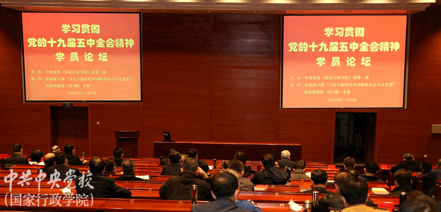 論壇上,省部級(jí)干部“習(xí)近平新時(shí)代中國(guó)特色社會(huì)主義思想”高級(jí)研修班六位學(xué)員聯(lián)系思想和工作實(shí)際,交流學(xué)習(xí)貫徹黨的十九屆五中全會(huì)精神的認(rèn)識(shí)和體會(huì)。