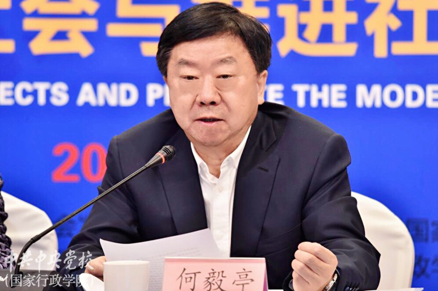 第十三屆全國人大常委會委員、社會建設委員會主任委員,中央黨校(國家行政學院)分管日常工作的副校(院)長何毅亭致辭