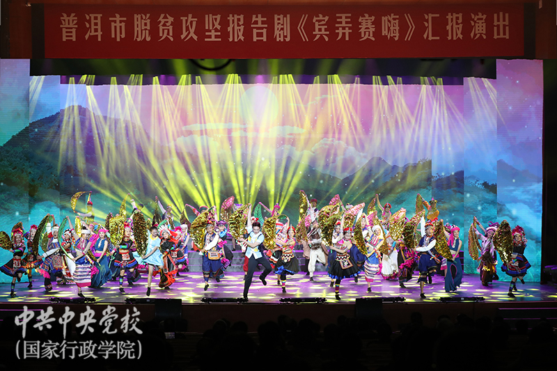12月20日,由云南省普洱市創作的脫貧攻堅報告劇《賓弄賽嗨》在中央黨校(國家行政學院)北校區禮堂演出。分管日常工作的副校(院)長何毅亭,副校(院)長甄占民、李季、李毅、謝春濤,中國農業銀行行長張青松,國家開發銀行副行長周清玉,以及駐京有關定點幫扶單位代表、全體在校學員一同觀看演出。