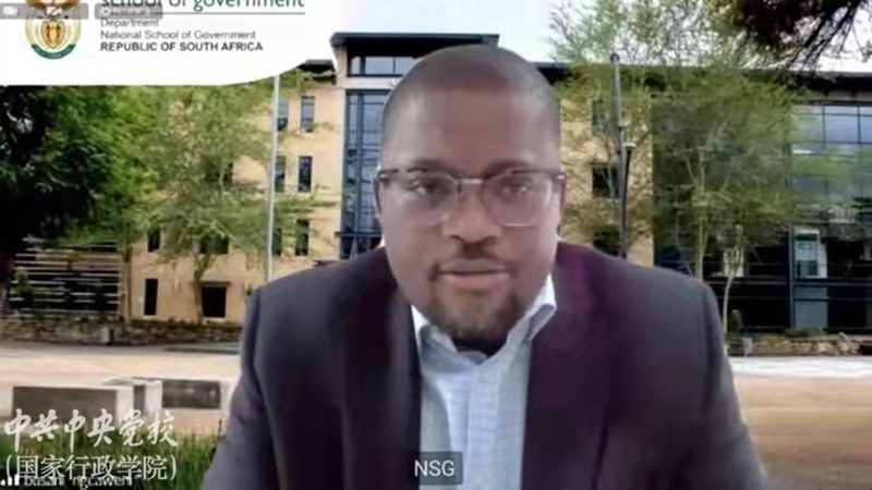 陳曉東代表中國駐南非大使館對研修班的順利舉辦表示祝賀。他指出,在百年未有之大變局和百年未有之大疫情相互交織、相互激蕩的背景下,中南兩國國家行政學院組織此次線上“公共管理研修班”,聚焦國家治理體系和治理能力現代化的建設,相互交流、取長補短,既是提升學員公共管理能力的現實需要,也是兩國間相互學習、共同進步的長遠要求。他表示,加強治國理政經驗交流,是不斷豐富中南全面戰略伙伴關系的應有涵義,也是兩國持續推進國家建設和應對新冠肺炎疫情挑戰的必然要求。中國駐南非使館愿為兩國國家行政學院深化各領域交流牽好線、搭好橋、服好務。歡迎各位學員在疫情結束后有機會多到中國去走一走、看一看。