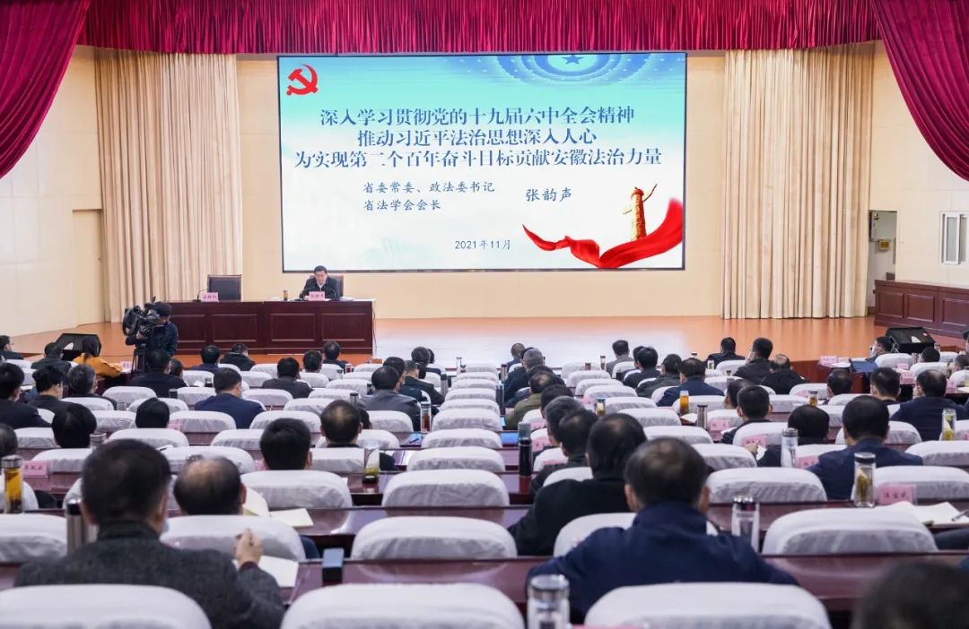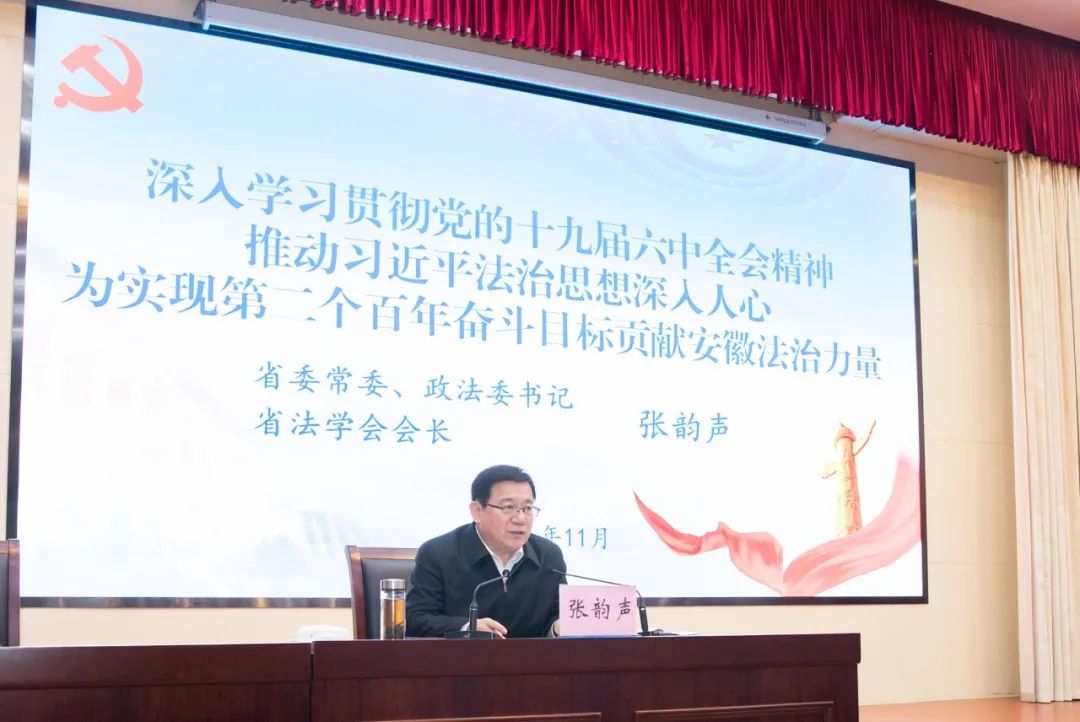 張韻聲強調,學深悟透習近平法治思想,要深刻認識習近平法治思想的重大意義,進一步增強學習宣傳貫徹的思想自覺、政治自覺、行動自覺;要牢牢把握習近平法治思想的核心要義,進一步系統理解“十一個堅持”的深刻內涵;要深刻理解習近平法治思想的價值追求,進一步自覺踐行以人民為中心的發展思想;要全面貫徹習近平法治思想的實踐要求,進一步開創依法治省和法治安徽工作新局面,為實現第二個百年奮斗目標貢獻安徽法治力量。