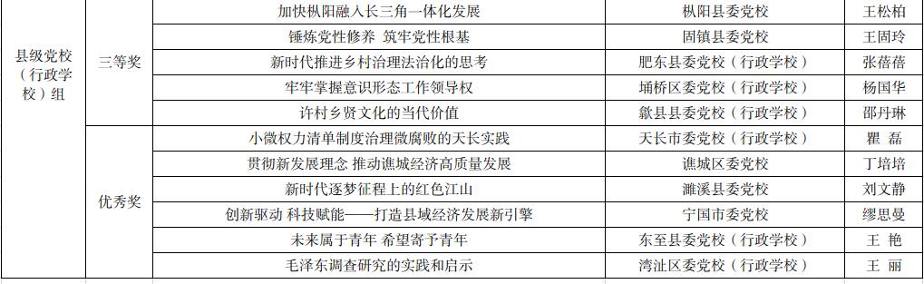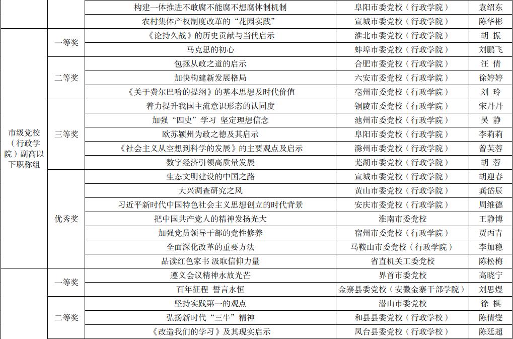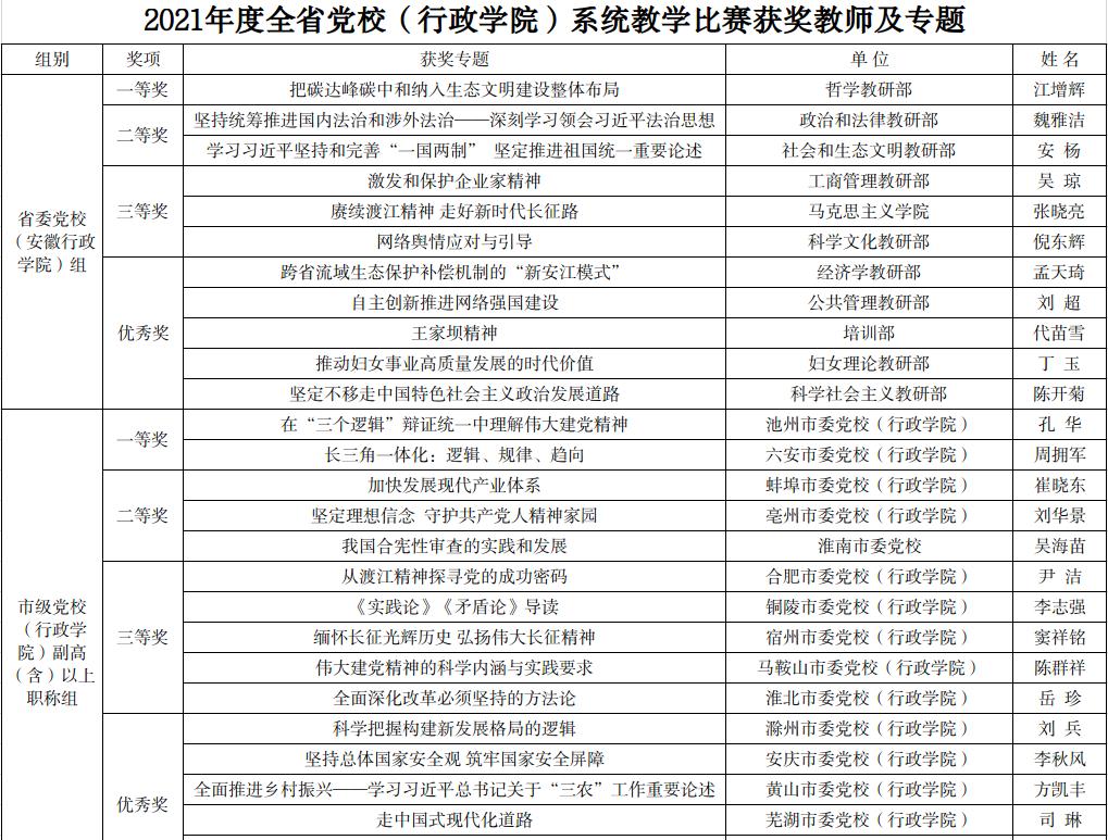 2021年度全省黨校(行政學院)系統教學比賽獲獎教師及專題