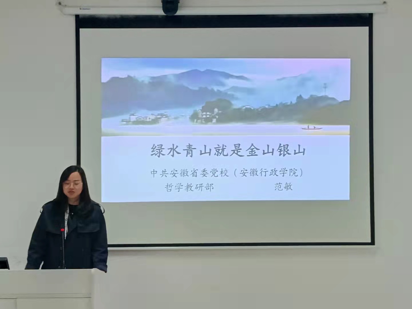 博士后韓寅、范敏分別就《自然辯證法》導讀和《綠水青山就是金山銀山》進行了試講。試講現(xiàn)場,兩位博士后準備充分,思路流暢清晰,充分展示了自己的教學素養(yǎng)與教學水平。教研部老師們從教學內(nèi)容、教學組織、教學語言與教學方法等方面進行了綜合評議,針對試講中存在的不足提出了中肯意見,尤其對理論構建、邏輯結構、材料選擇、表達方式等方面提出了意見和建議。