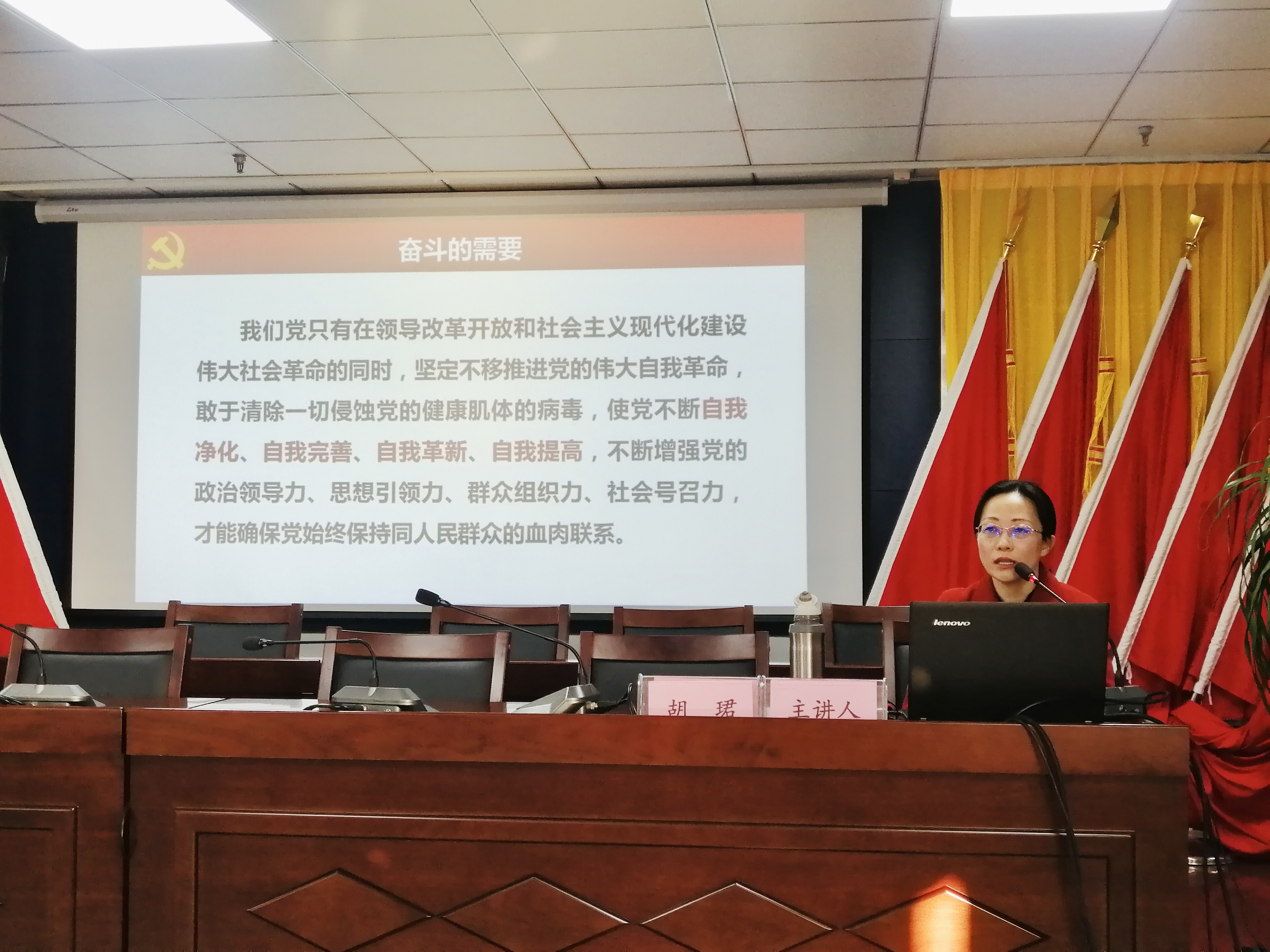 12月20日下午,校(院)學習貫徹黨的十九屆六中全會精神宣講活動在合肥市蕪湖路街道“赤闌橋流動黨校”舉行,黨史黨建教研部副教授胡珺以《偉大成就催人奮進 寶貴經驗昭示未來——學習貫徹黨的十九屆六中全會精神》為題作專題宣講。蕪湖路街道轄區內社區和11家黨建聯盟單位黨員代表參加了這次活動。
