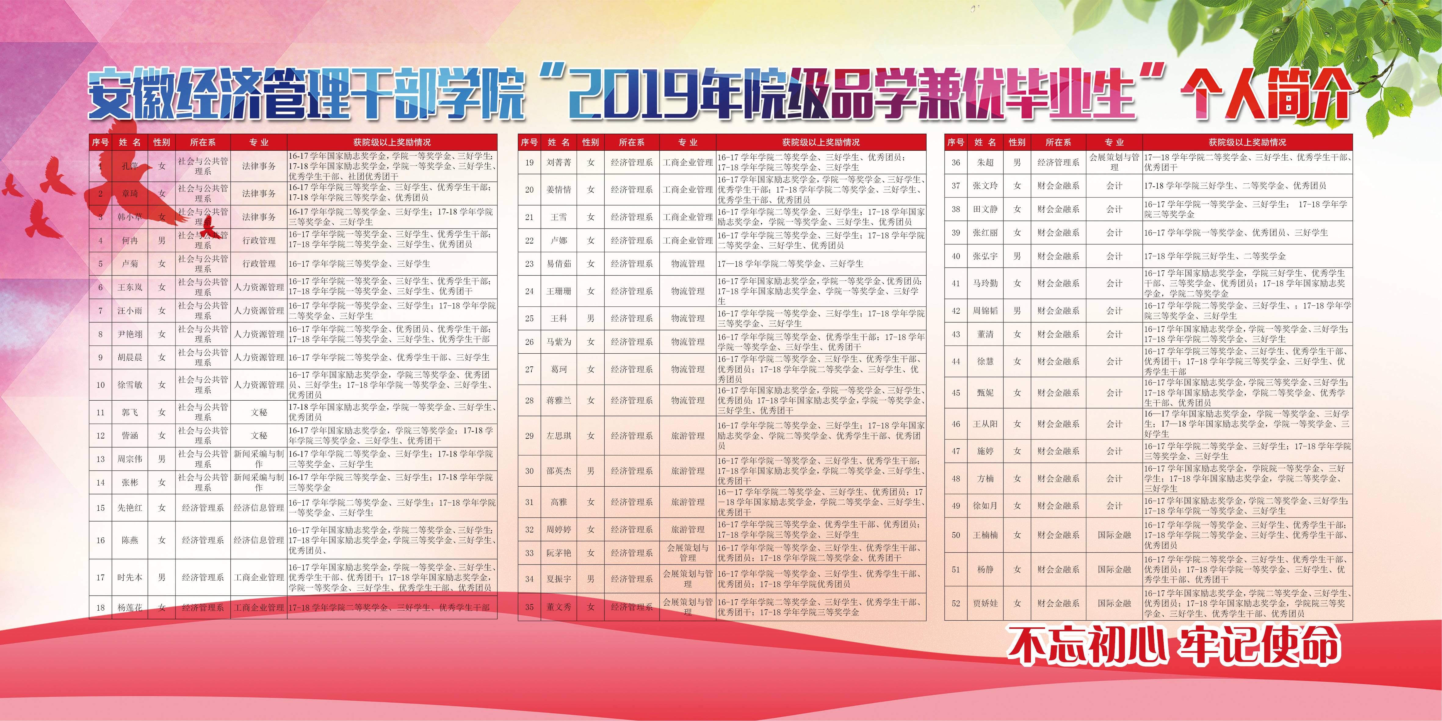 根據(jù)安徽省教育廳和學(xué)院有關(guān)文件精神,安徽經(jīng)濟(jì)管理干部學(xué)院在2019屆畢業(yè)生中幵展了“安徽省普通高等學(xué)校品學(xué)兼優(yōu)畢業(yè)生”評選活動。
