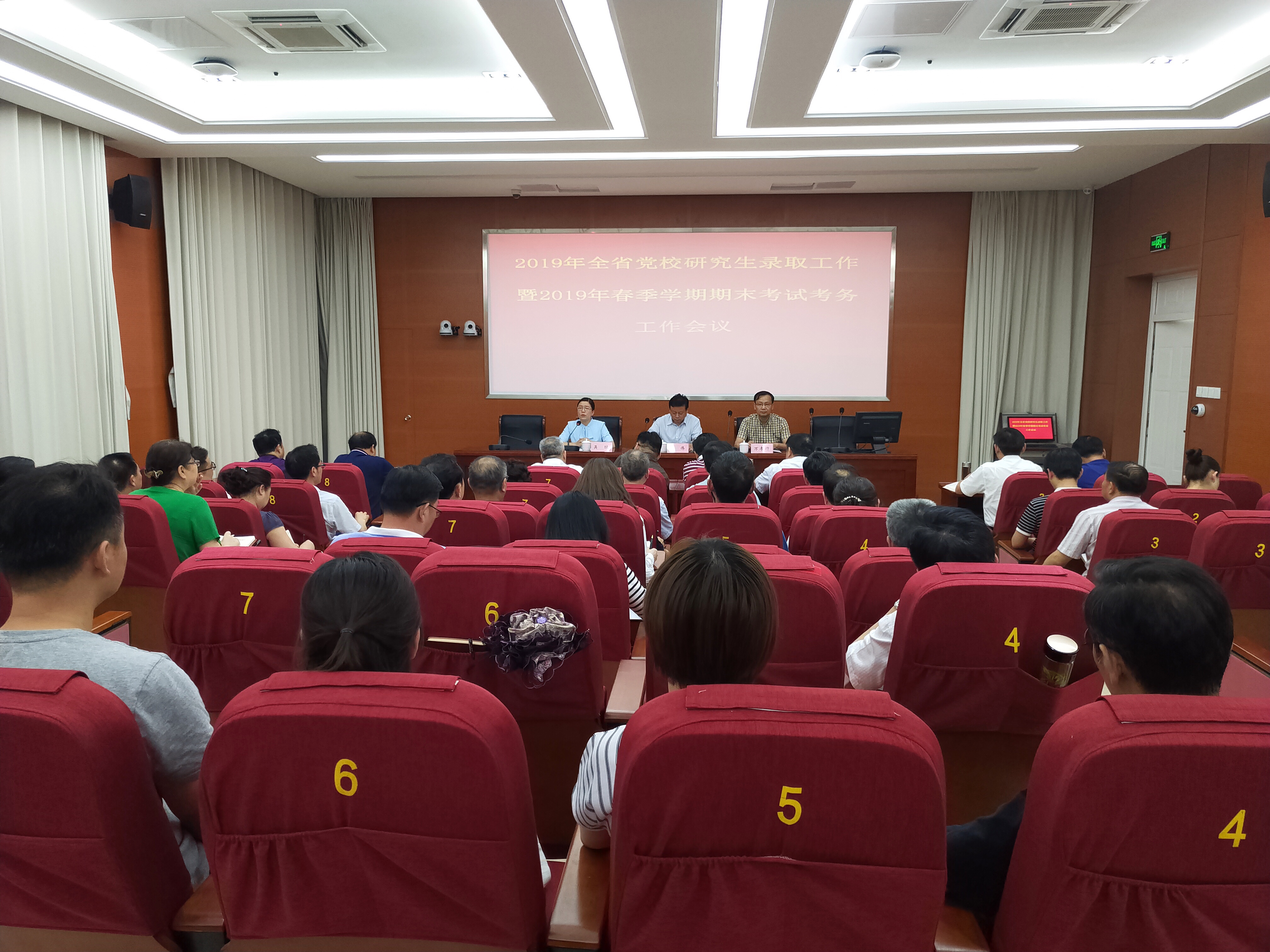 6月27日,2019年全省黨校研究生錄取工作暨2019年春季學期期末考試考務工作會議召開。省轄市委黨校及省直黨校分管校領導、研辦主任,校(院)有關處室負責人及監考教師參加會議。