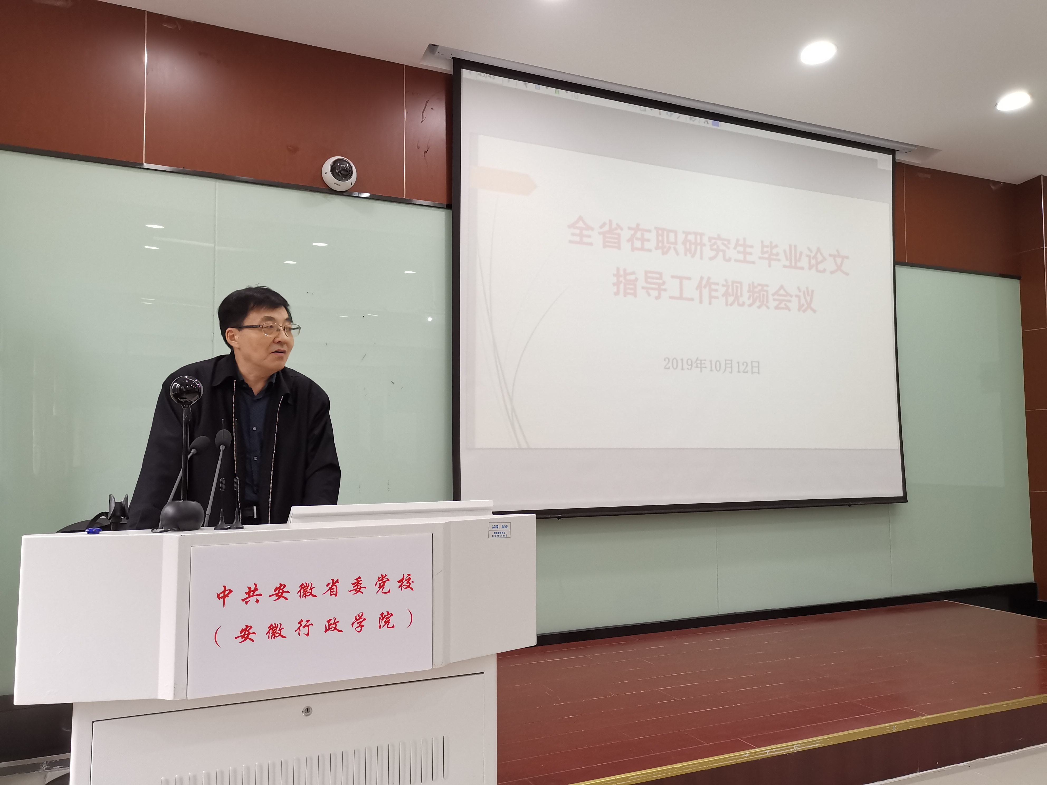 10月12日下午,省委黨校(安徽行政學院)在中校區召開全省在職研究生畢業論文指導工作視頻會議,副校(院)長王正國出席會議并講話。會議由研究生部主任郭偉主持,研究生教育三個專業教學指導組組長胡東升、羅紅、安群及校(院)40多位擔任論文指導工作的教師參加了會議。16個教學點在分會場通過視頻同步收看。