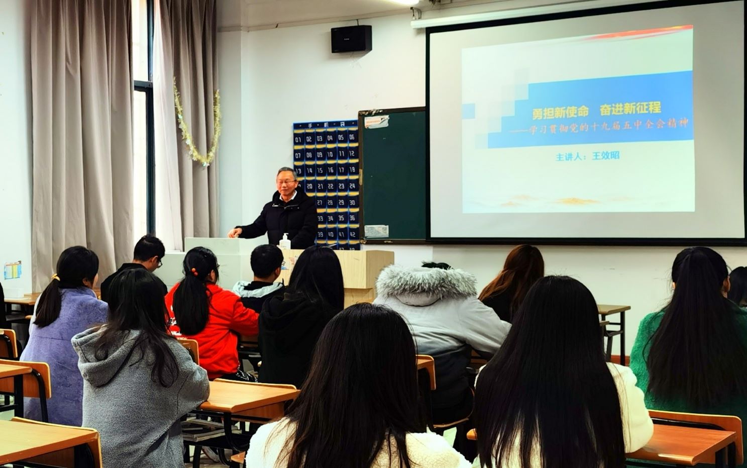 為深入學(xué)習(xí)貫徹黨的十九屆五中全會精神,不斷加強(qiáng)大學(xué)生思想政治工作的針對性和實效性,11月25日下午,安徽經(jīng)濟(jì)管理學(xué)院邀請教學(xué)督導(dǎo)王效昭教授為大學(xué)生作題為《勇?lián)率姑瑠^斗新征程》的專題講座。