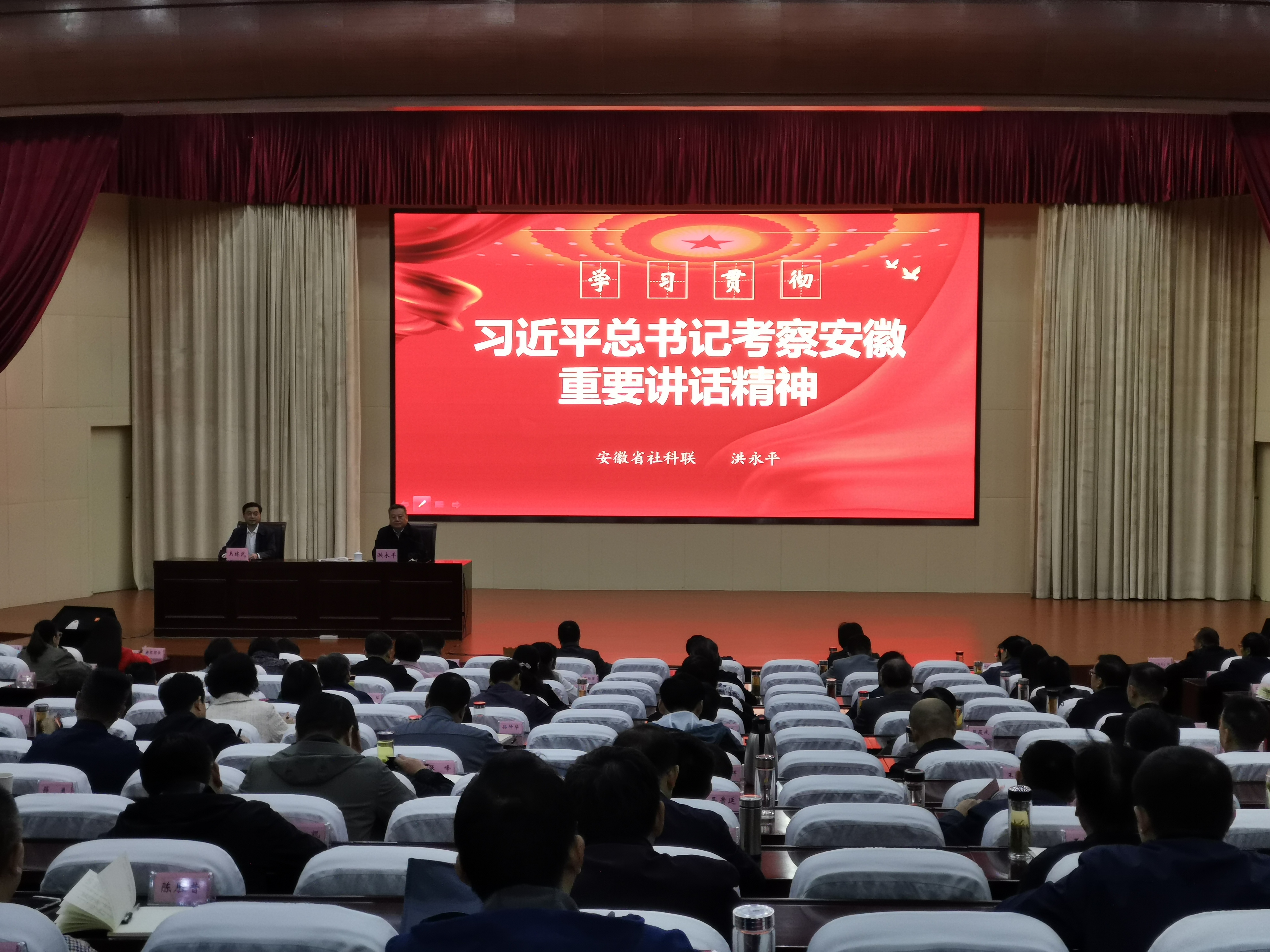 10月22日上午,省社科聯黨組書記、常務副主席洪永平應邀來省委黨校(安徽行政學院)為主體班學員作“學習貫徹習近平總書記考察安徽重要講話精神”專題輔導報告,副校(院)長王林武主持。
