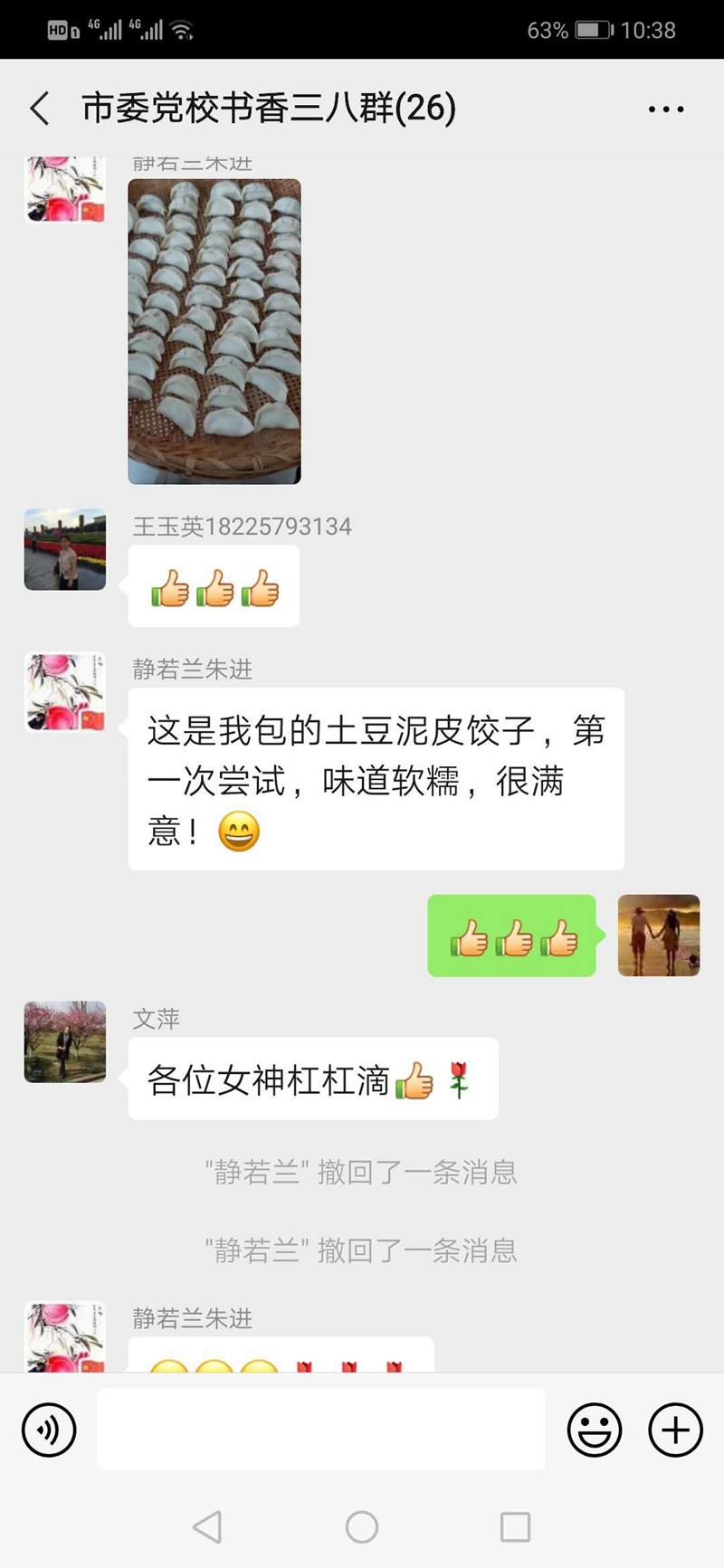 3月8日一大早,滁州市委黨校書香三八群叮叮、咚咚響個不停。女職工們聽說要進行線上才藝大比拼,個個摩拳擦掌,躍躍欲試。線上廚藝大比拼,在一盤自制的小油條中拉開序幕。玉米面的饅頭,土豆泥的餃子,自制牛排,特色煲仔,繽紛蔬菜帶來視覺盛宴同時也沖擊著大家的味蕾。隔著屏幕仿佛能聞到花椒、孜然們綻放的獨特芬芳。一盤紅燒肉,把廚藝大賽推向高潮,舌尖上的中國在這里得到又一次詮釋。讓人不由感嘆,今天的生活真幸福啊!廚藝展示剛剛結束,舞蹈秀、攝影秀緊接開始了,“春到南湖”,“陌上花開”,連盆栽小蔥也被制成圖片呈現出來,美輪美奐。當幾張三八節我校女職工參加社區疫情志愿服務圖片出現在屏幕時,大家紛紛豎起大拇指,為她們的辛勤付出和默默守候點贊加油,紛紛感受他們才是節日里當之無愧的最美風景。三八節線上活動最后在疫情防控知識競答中圓滿落幕。