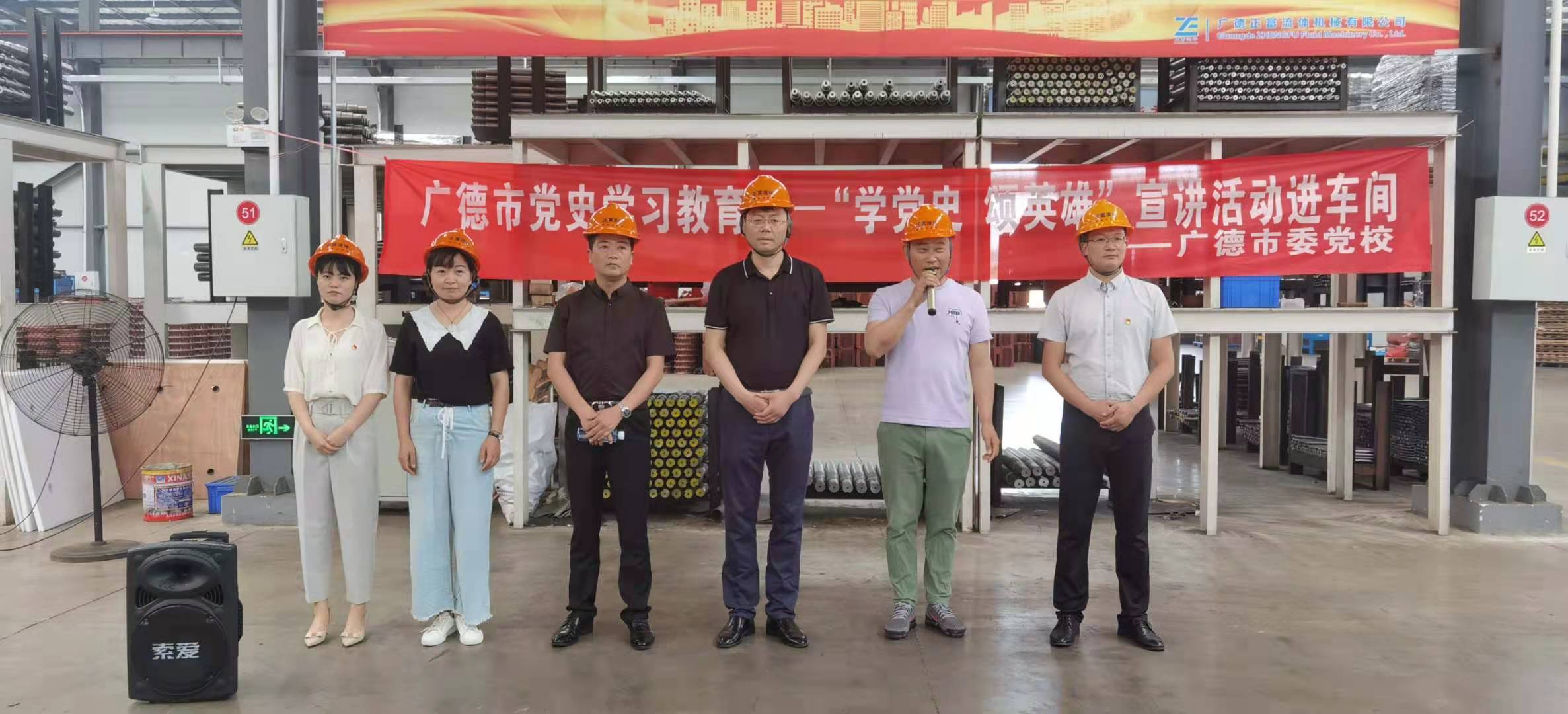 6月10日,廣德市委黨校開展“學黨史 頌英雄”宣講進車間活動,走進廣德正富流體機械有限公司開展黨史學習教育。本次宣講活動由校領導帶隊,活動地點設在正富流體的一生產車間,車間的全體員工參加了活動。