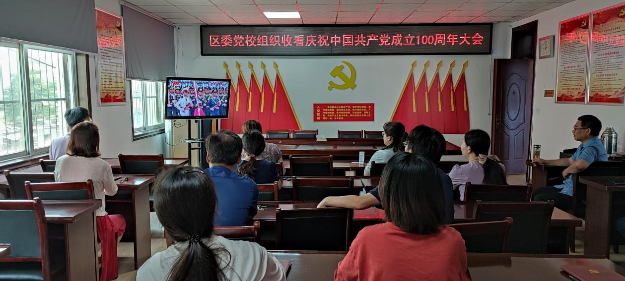 7月1日上午8時,慶祝中國共產黨成立100周年大會在北京天安門廣場隆重舉行,習近平總書記出席大會并發表重要講話。區委黨校組織全體在職黨員收看現場直播。