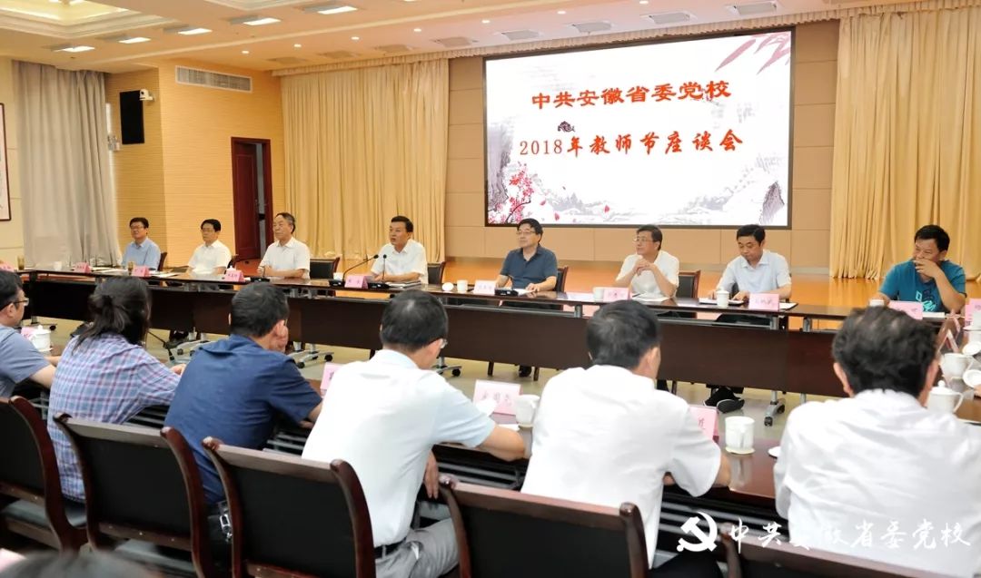 9月7日,省委黨校召開慶祝2018年教師節座談會。常務副校長張永出席并講話。副校長王正國主持。省委組織部干部教育處處長王林武到會指導,校領導鄧玉明、胡忠明、丁毅,副教育長,各處室主要負責人和全校教研和教輔人員參加會議。
