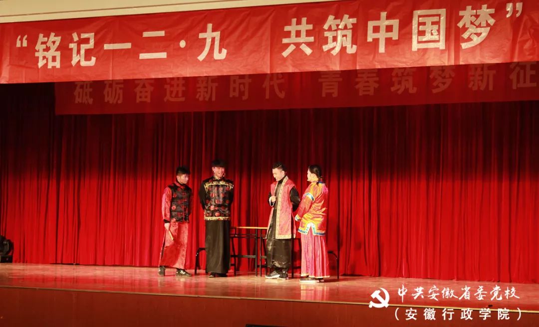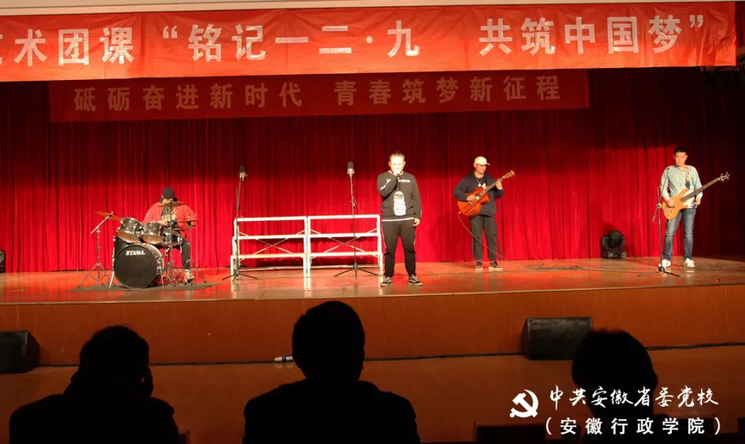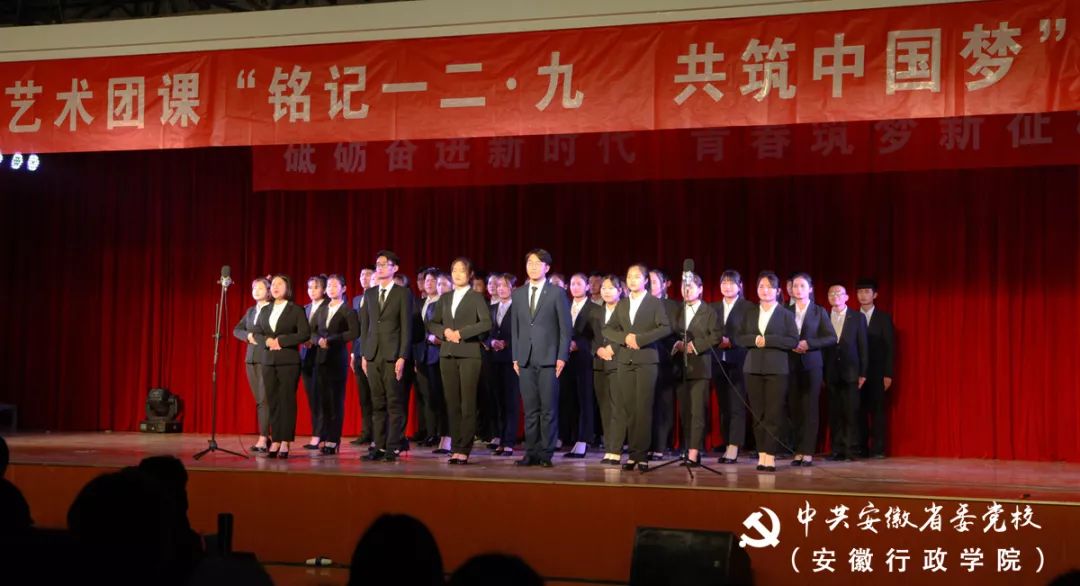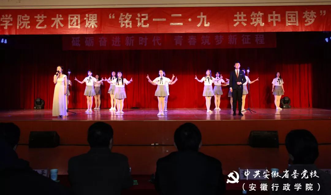 12月9日,安徽經濟管理學院團委在西校區舉辦主題藝術團課暨“銘記一二·九 共筑中國夢”文藝匯演。安徽經濟管理學院黨委書記、院長張永,院黨委委員、副院長鄧玉明、童玲與700余名師生觀看演出。