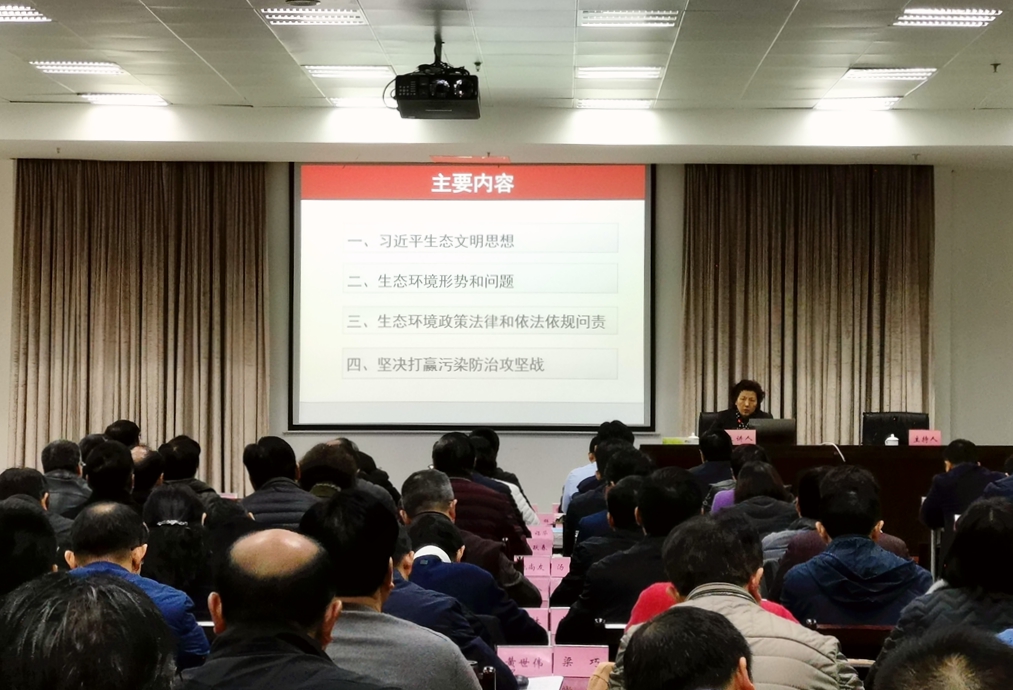 徐恒秋緊緊圍繞學習貫徹習近平生態文明思想,全面闡述了當前生態環境保護取得的成就及生態環境形勢和問題,深度解讀了生態環境政策法律和依法依規問責、堅決打贏污染防治攻堅戰等方面內容。她指出,生態環境是關系黨的使命宗旨的重大政治問題,也是關系民生的重大社會問題,必須把生態文明建設擺在全局工作的突出地位,積極回應人民群眾所想、所盼、所急,大力推進我省生態文明建設。