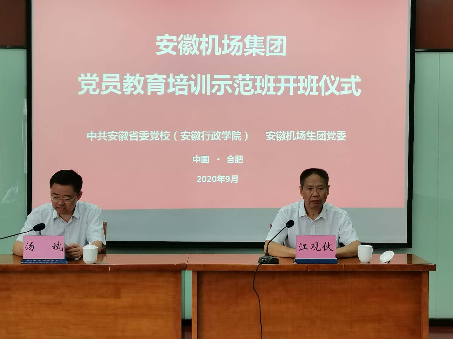 8月31日至9月4日,安徽機場集團黨員教育培訓示范班在省委黨校(安徽行政學院)舉辦。省委黨校(安徽行政學院)副校(院)長江觀伙,安徽機場集團黨委委員、副總經理湯斌出席開班式,集團下設機構負責黨務工作同志50余人參加培訓。