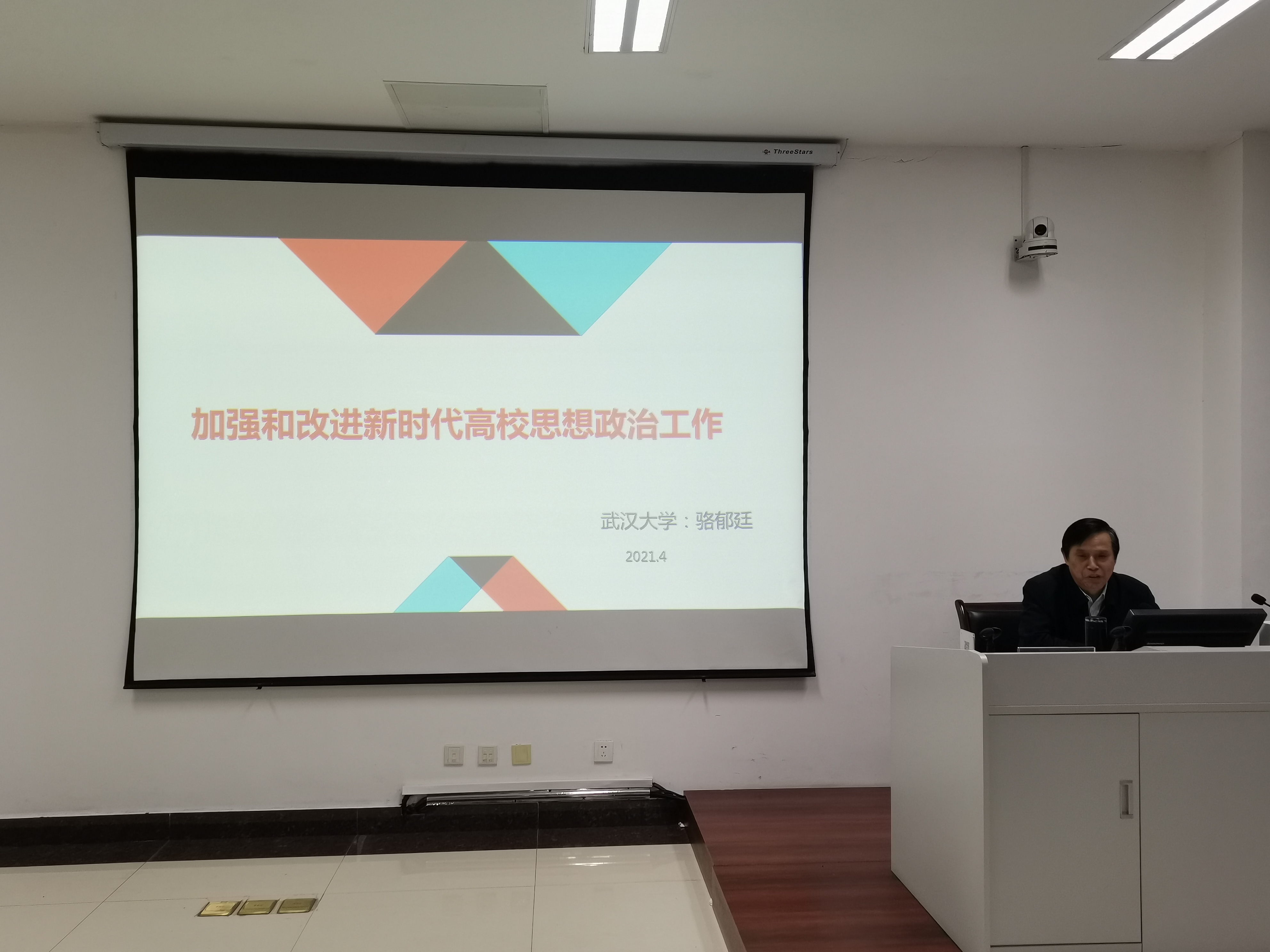 4月27日下午,武漢大學原黨委副書記駱郁廷教授應邀為校(院)主體班作題為“加強和改進新時代高校思想政治工作”專題報告,副教育長王敬志主持。