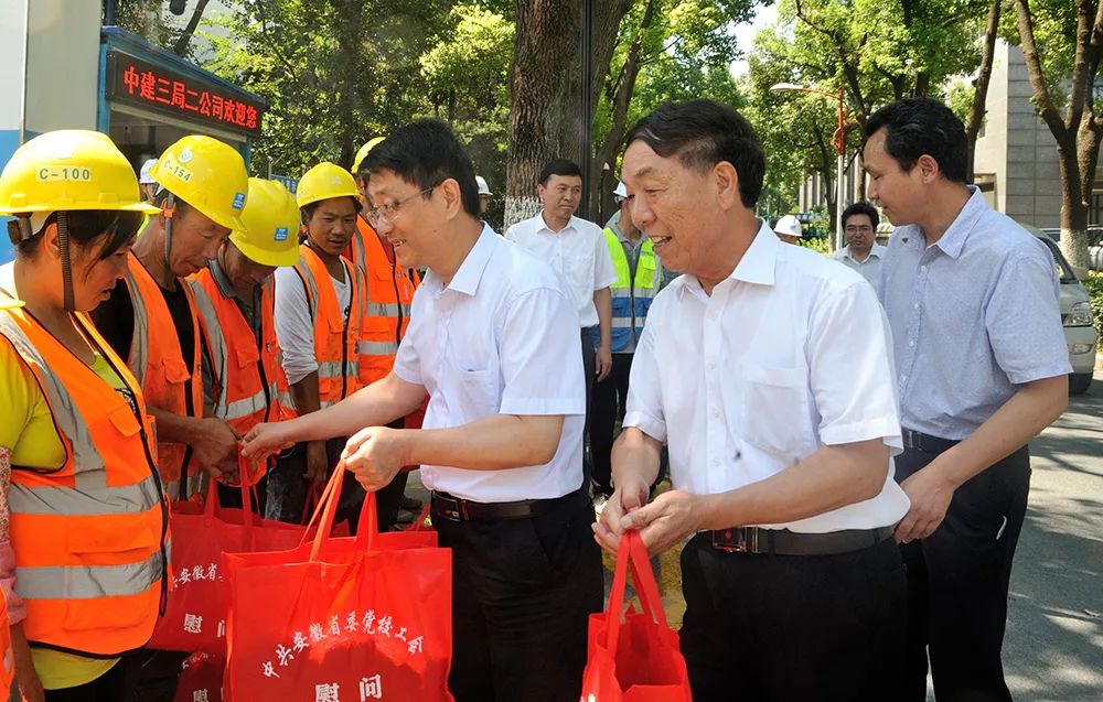 校領導鄧玉明、丁毅走訪慰問奮戰在高溫下的勞動者。