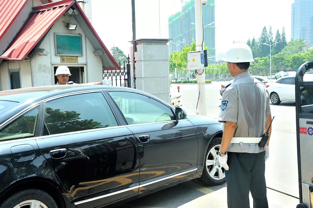 “您好,請出示您的證件。”雖然酷暑難耐,但安全檢查、車輛出入登記,保安員嚴格執行每一道程序。