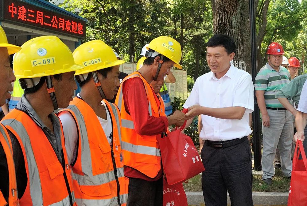 7月18日上午,省委黨校啟動夏季送清涼活動,校領導張永、鄧玉明、丁毅,副教育長袁林生和有關處室負責人看望慰問我校學員中心項目建設高溫作業人員,為奮戰在一線的勞動者們送去黨校的問候和關愛。