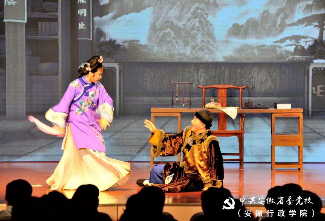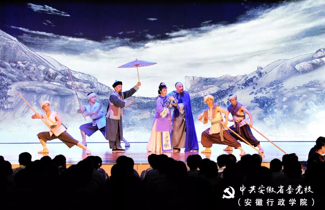 省委黨校(安徽行政學(xué)院)引入黃梅戲《不越雷池》,面向主體班學(xué)員舉辦專場演出,旨在是通過黃梅戲這一傳統(tǒng)藝術(shù)形式,增強(qiáng)黨性教育和廉政教育的針對性有效性,教育引導(dǎo)學(xué)員始終不忘初心、牢記使命,錘煉忠誠干凈擔(dān)當(dāng)?shù)恼纹犯瘢杂X弘揚共產(chǎn)黨人忠誠老實、公道正派、實事求是、清正廉潔等價值觀。