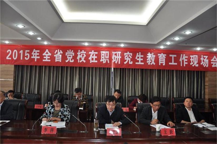 10月20日,2015年安徽省委黨校在職研究生教育工作現場會暨教務考勤管理員培訓會在滁州市委黨校召開,參加會議的有省委黨校研究生部全體工作人員以及各市委黨校研辦主任和考勤管理員,會議由省委黨校研究生部副主任劉紅運主持,省委黨校副校長王正國、滁州市委黨校常務副校長王躍、副校長姜小平出席了此次會議。首先,滁州市委黨校常務副校長王躍代表校委致辭并介紹了滁州的基本概況,滁州市委黨校研辦主任蔣傳文介紹了滁州教學點的辦學經驗,接著與會的各市委黨校研辦主任圍繞著“如何加強管理,提高辦學質量”這一主題,大家暢所欲言,各抒己見,就各自的辦學情況、辦學經驗和辦學中遇到的困惑作了交流性發言,并達成了一定的共識,李萍主任代表研究生部介紹了赴湖南、湖北、江西三個省委黨校學習考察的情況并布置近期的幾項工作,最后王正國副校長代表校委作重要講話。