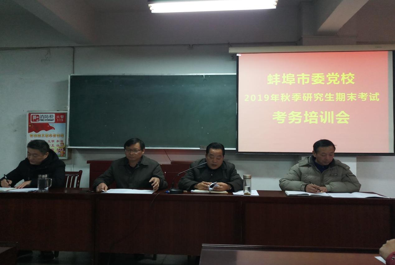 省委黨校(安徽行政學院)在職研究生2019年秋季學期期末考試工作于12月21至22日進行。蚌埠教學點對此次期末考試工作高度重視, 12月20日下午召開期末考試考務工作培訓會議。傳達全省黨校系統(tǒng)研究生期末考試考務會議精神,對考試的組織領導、時間安排、考場布置、紀律要求、工作流程等方面做了精心布置與安排。