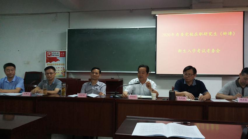 蚌埠黨校校委高度重視本次研究生入學(xué)考試考務(wù)工作,專門成立了由常務(wù)副校長李安東任組長的考試領(lǐng)導(dǎo)小組和防疫防控領(lǐng)導(dǎo)小組,在7月10日下午召開研究生入學(xué)考試考務(wù)工作和防疫防控工作培訓(xùn)會議,傳達全省黨校系統(tǒng)研究生入學(xué)考試考務(wù)會議精神,對本次入學(xué)考試的組織領(lǐng)導(dǎo)、疫情防控、時間安排、考場布置、工作流程等方面做了精心布置與安排。