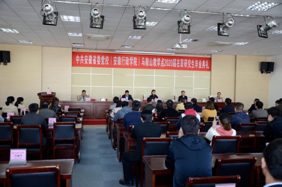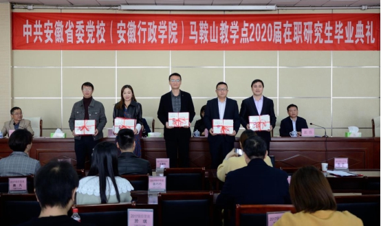 10月24日上午,馬鞍山市委黨校在圖書館報告廳隆重舉行了中共安徽省委黨校(安徽行政學院)馬鞍山教學點2020屆在職研究生畢業典禮。市委黨校校務委員會主任、常務副校長史達蓉同志和省委黨校(安徽行政學院)研究生部主任郭偉同志、督學趙家俊同志出席典禮,畢業典禮由市委黨校分管副校長胡濤同志主持。