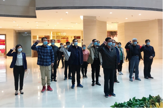 在渡江戰(zhàn)役紀(jì)念館大廳的黨旗前,支部書記蔣俊領(lǐng)誓,全體黨員重溫入黨誓詞,牢記初心使命。